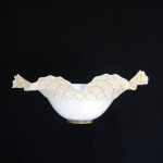 Applique con diffusore di vetro festonato con finitura “graniglia” e decoro “quadretti ambra” a rilievo.