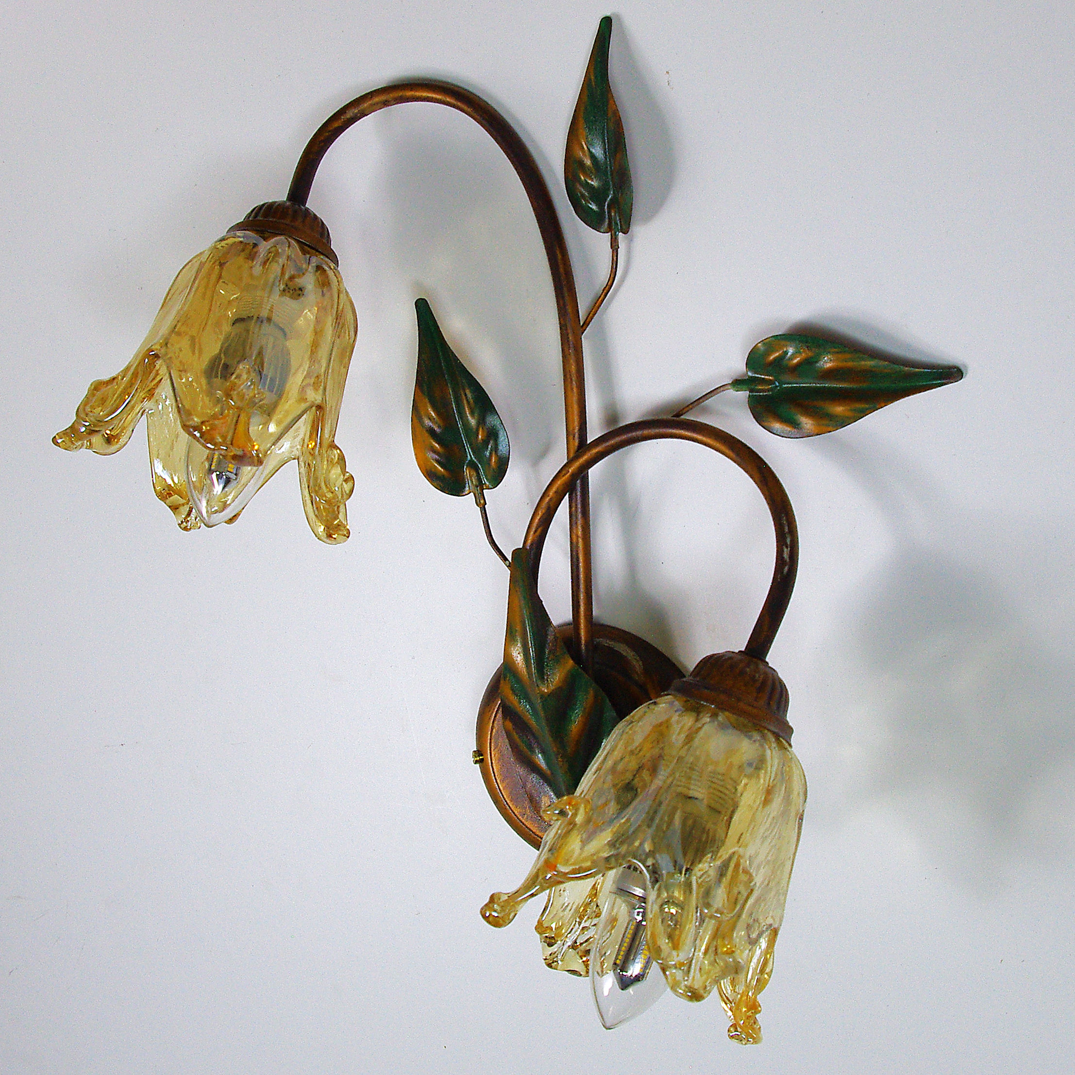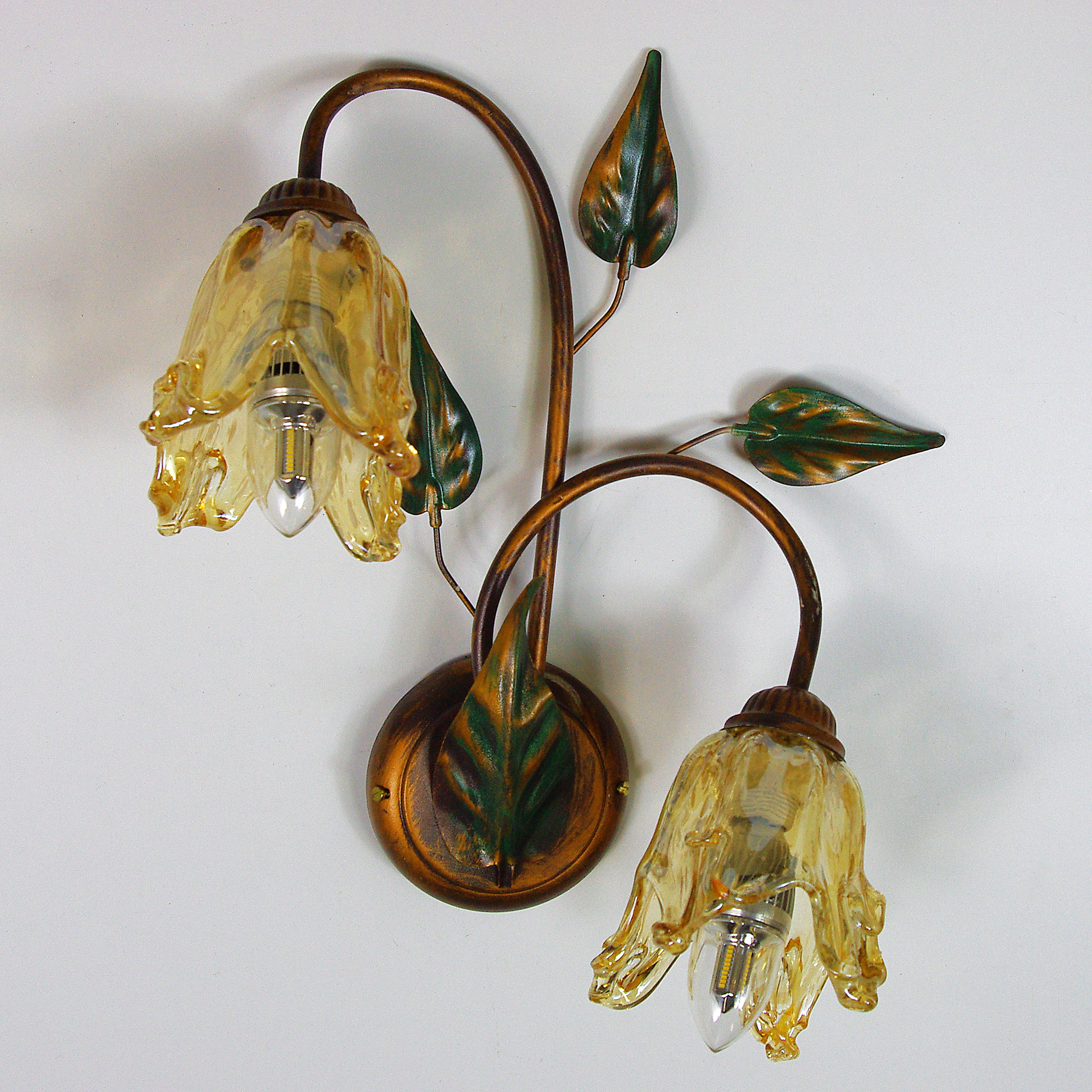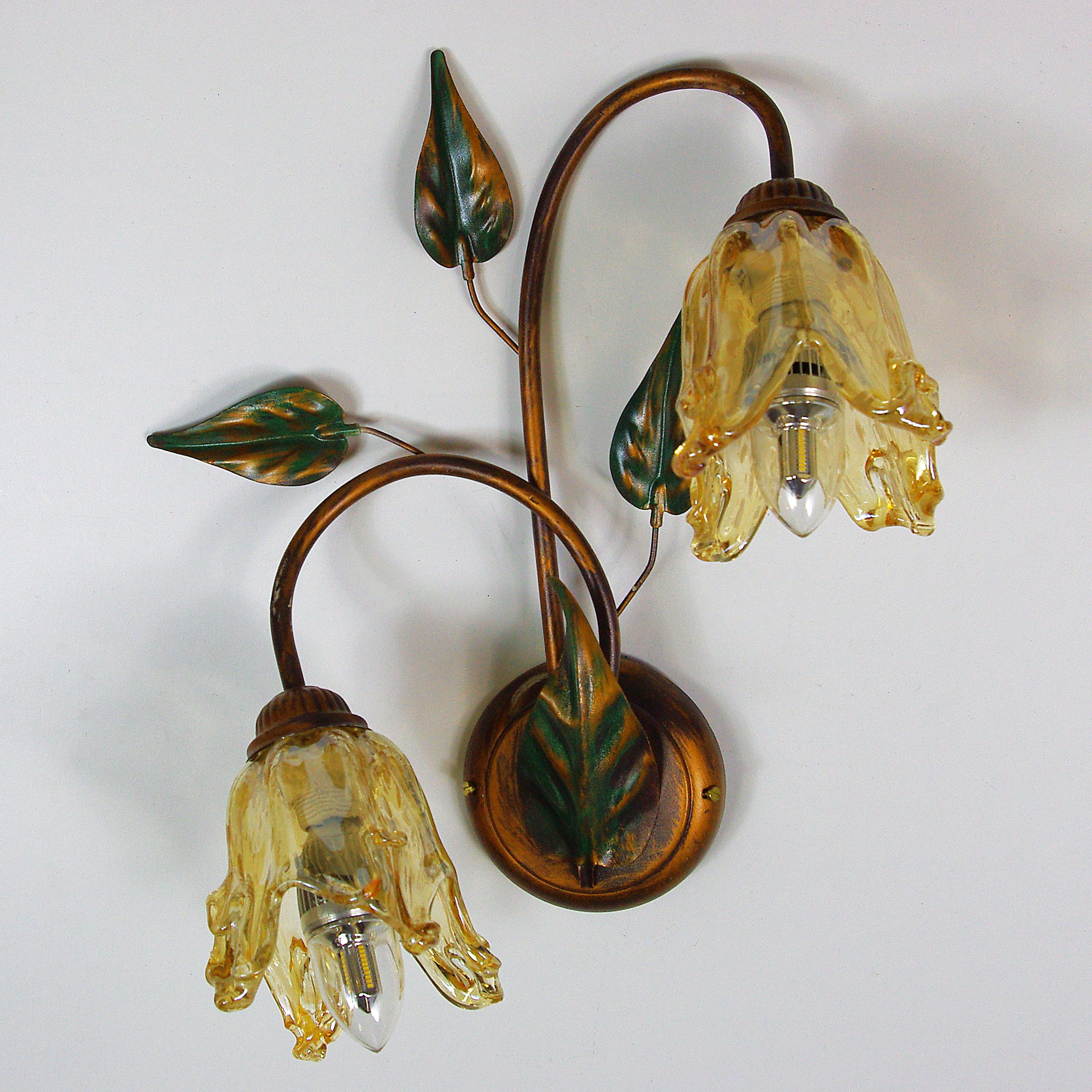 Lancer_A2 applique floreale di ferro battuto e vetri ambra