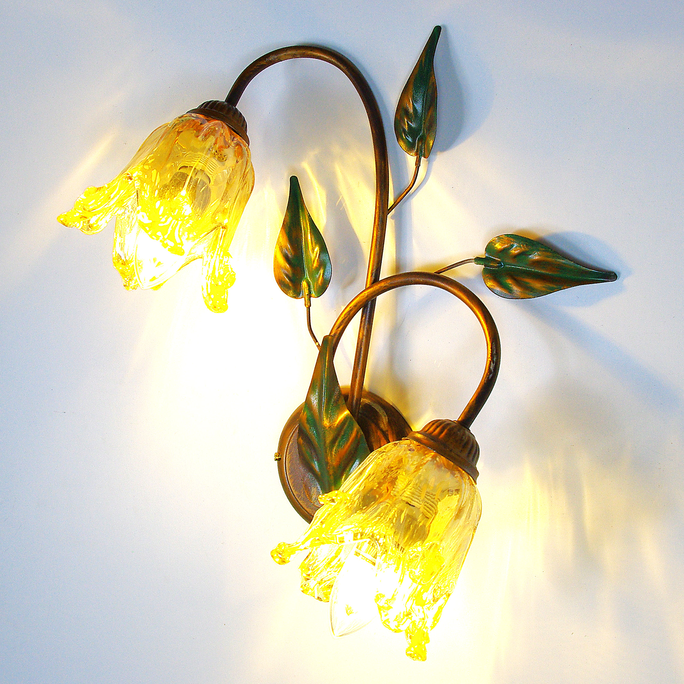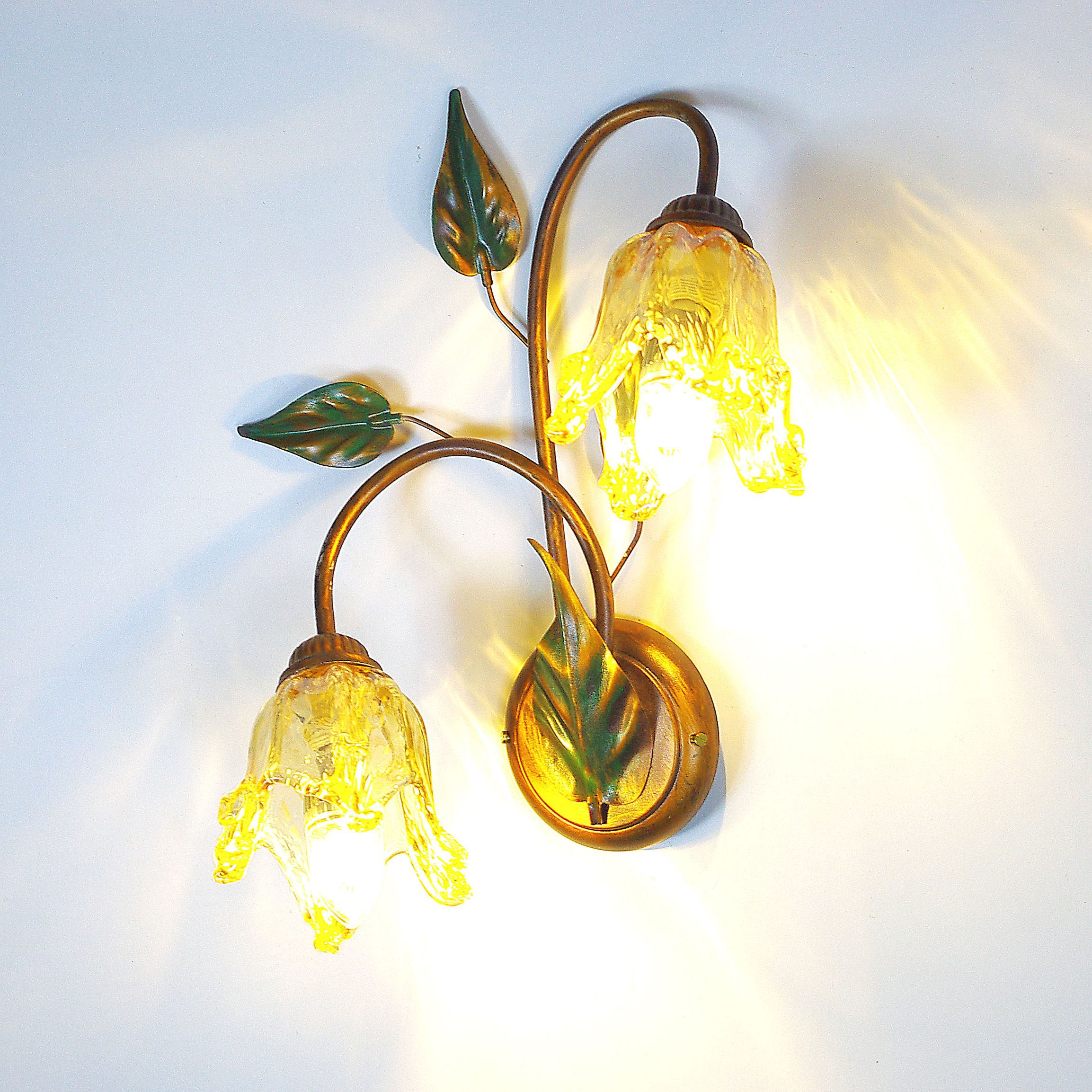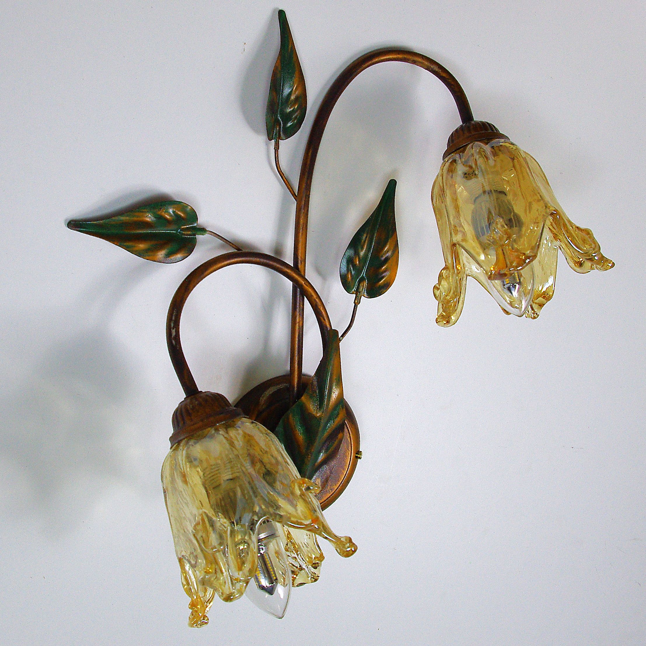 Lancer_A2 applique floreale di ferro battuto e vetri ambra