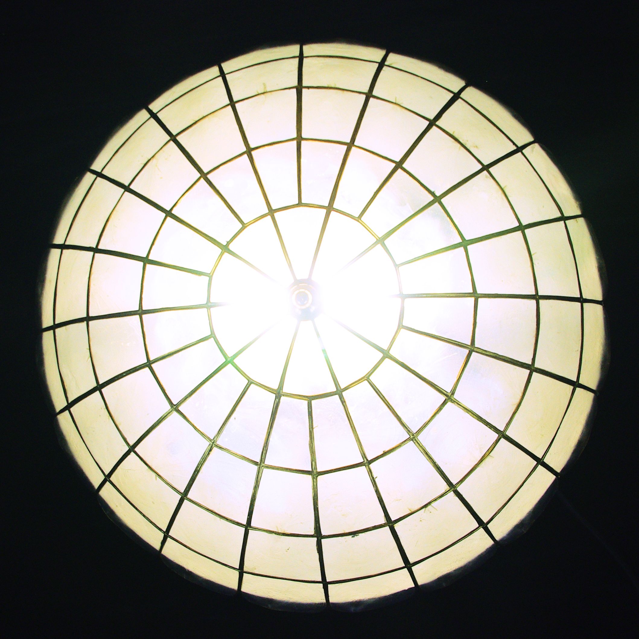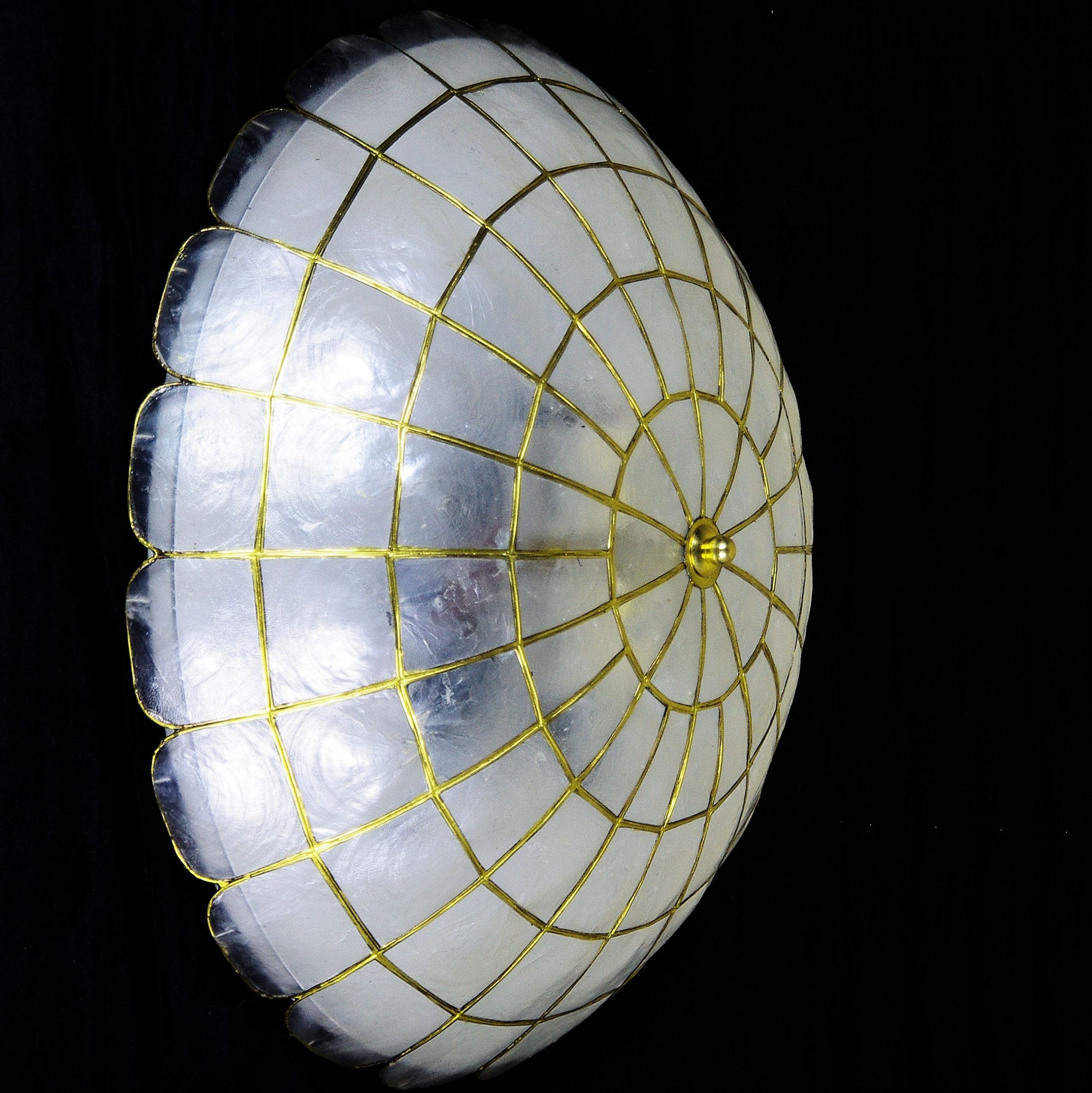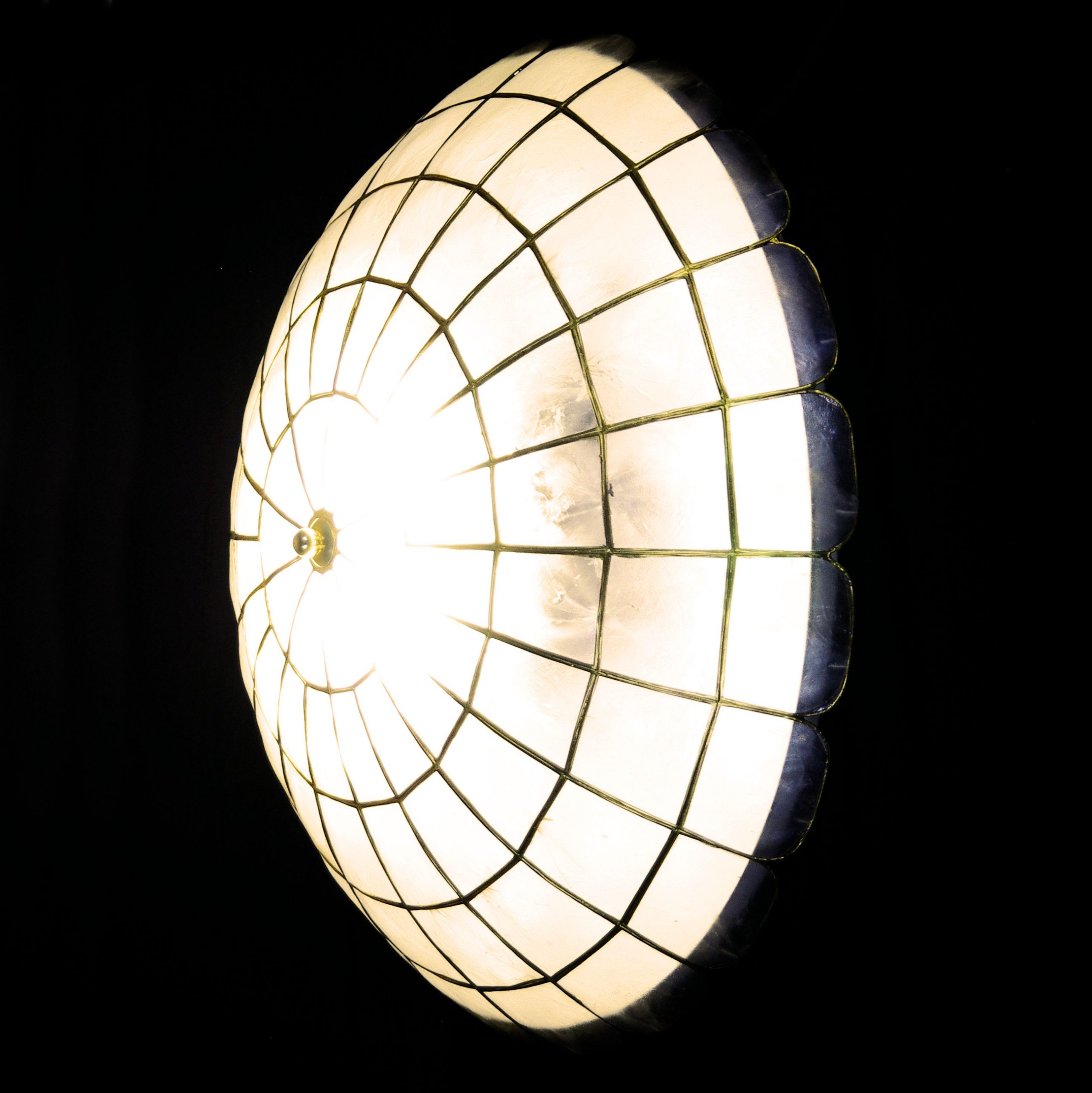 Plafoniera con diffusore realizzato in mosaico di madreperla.