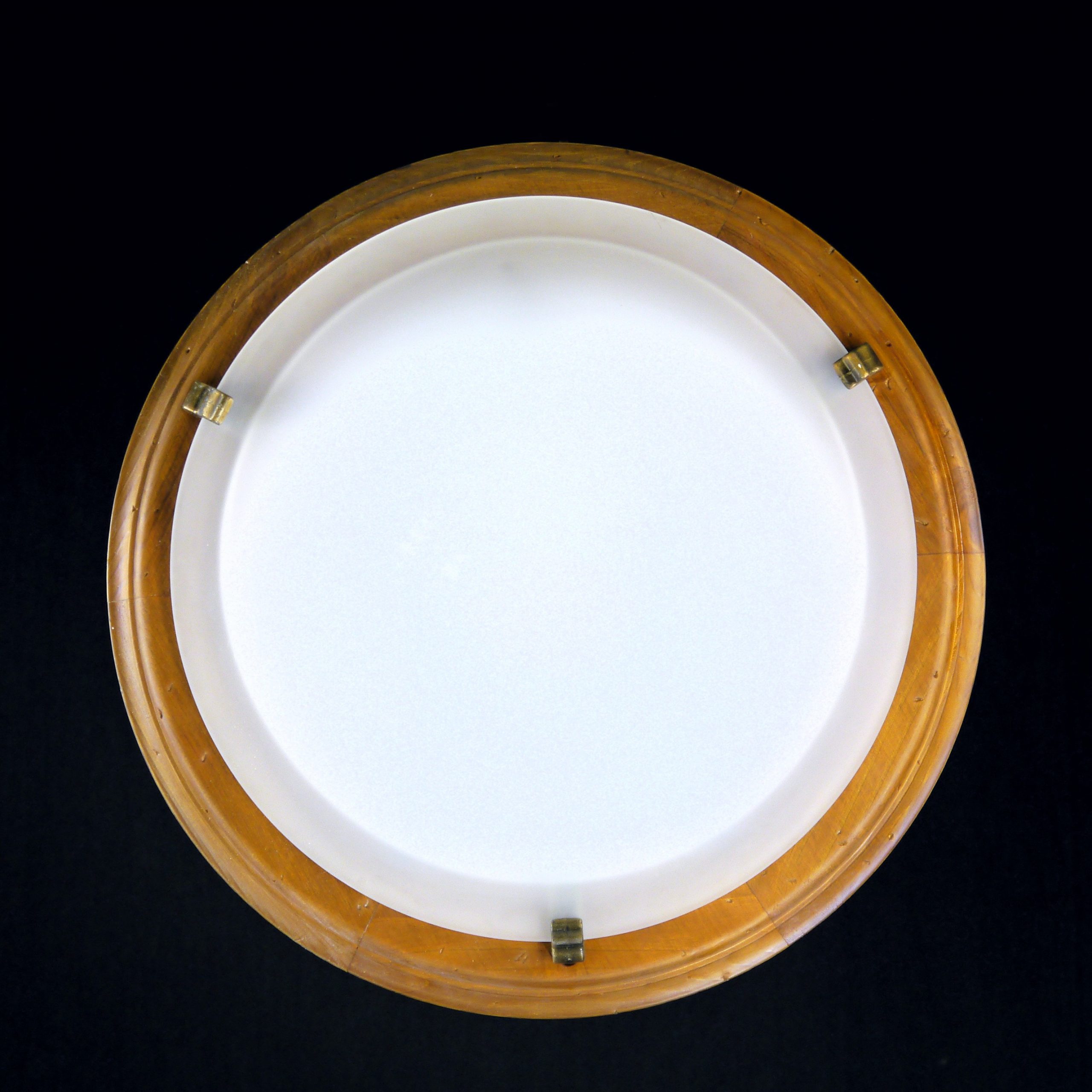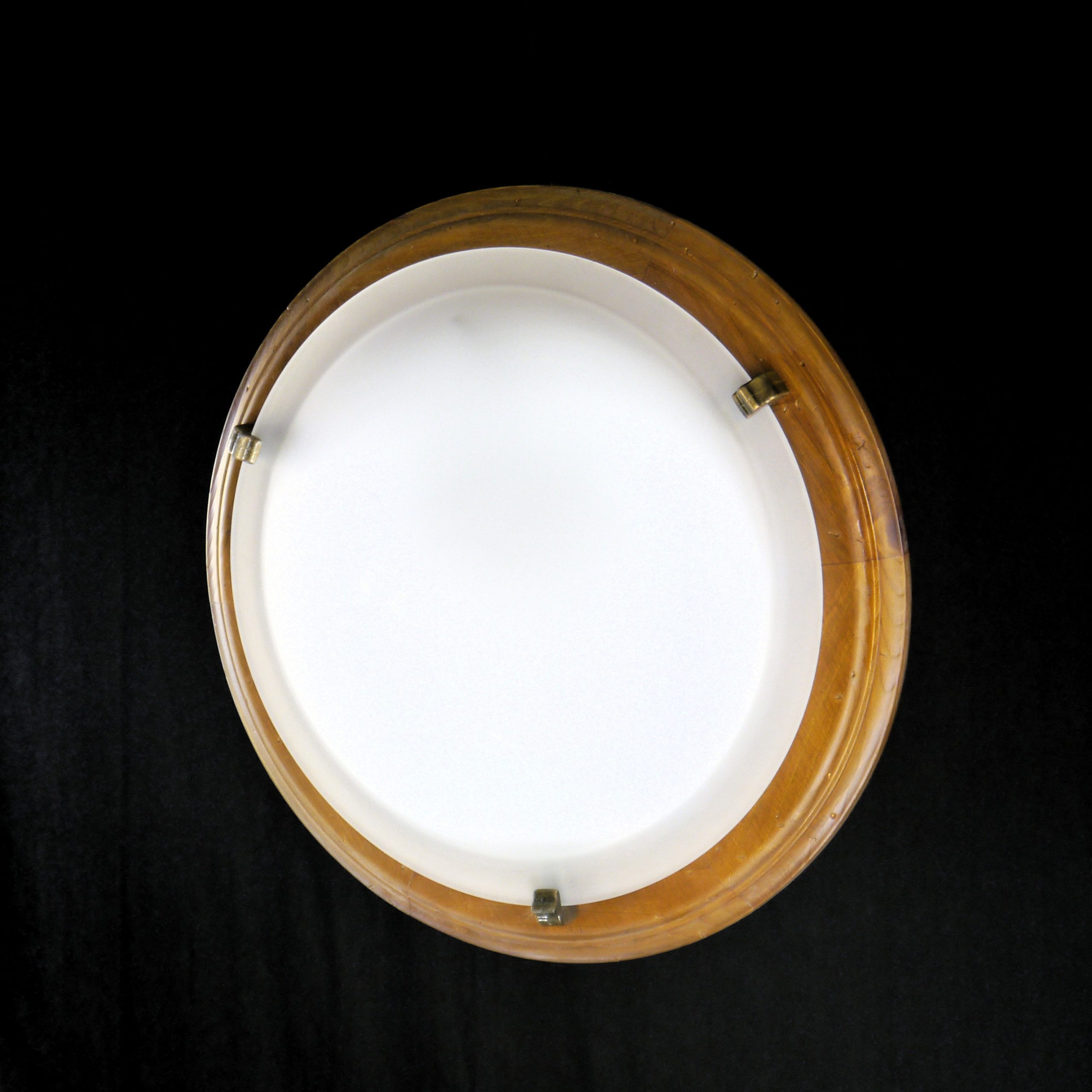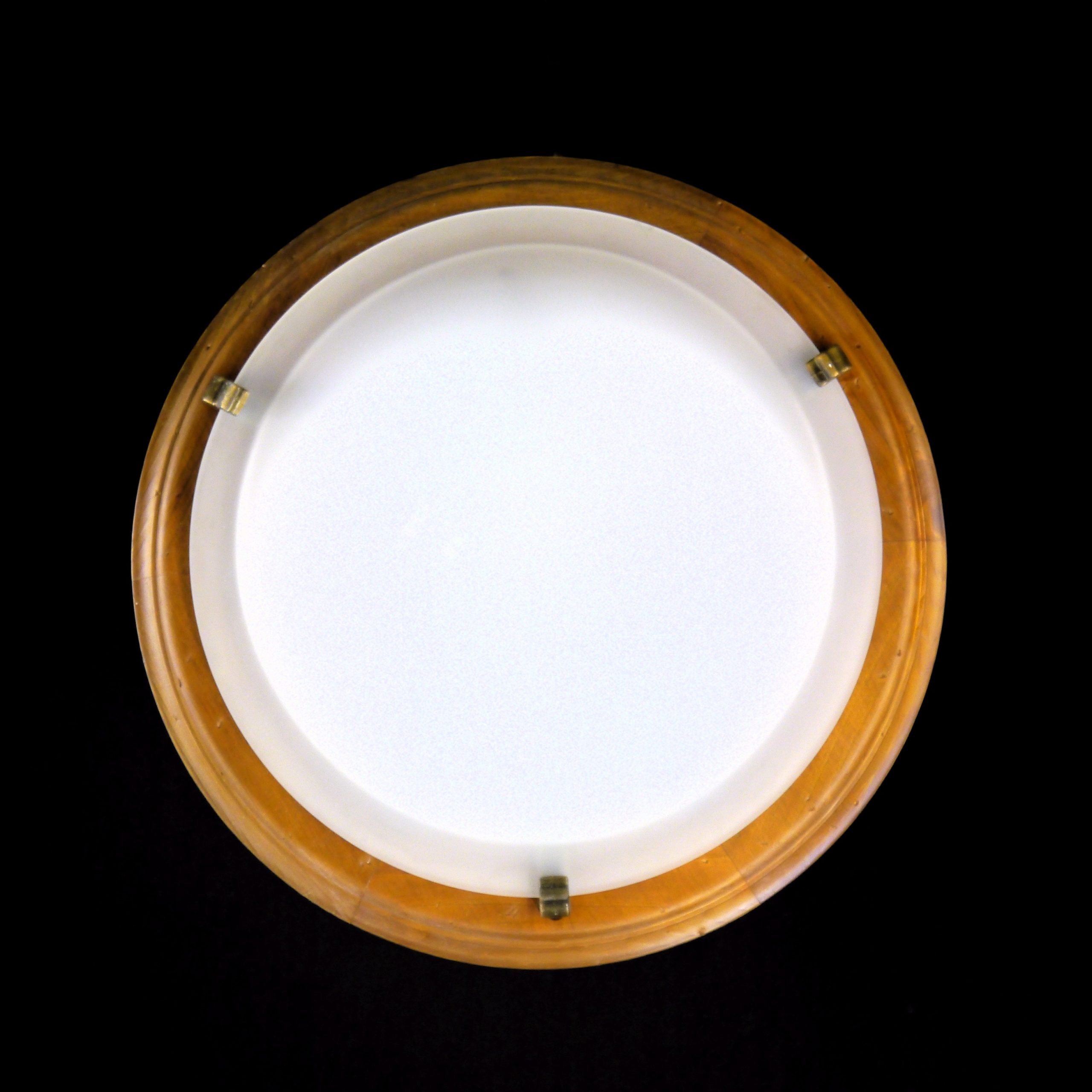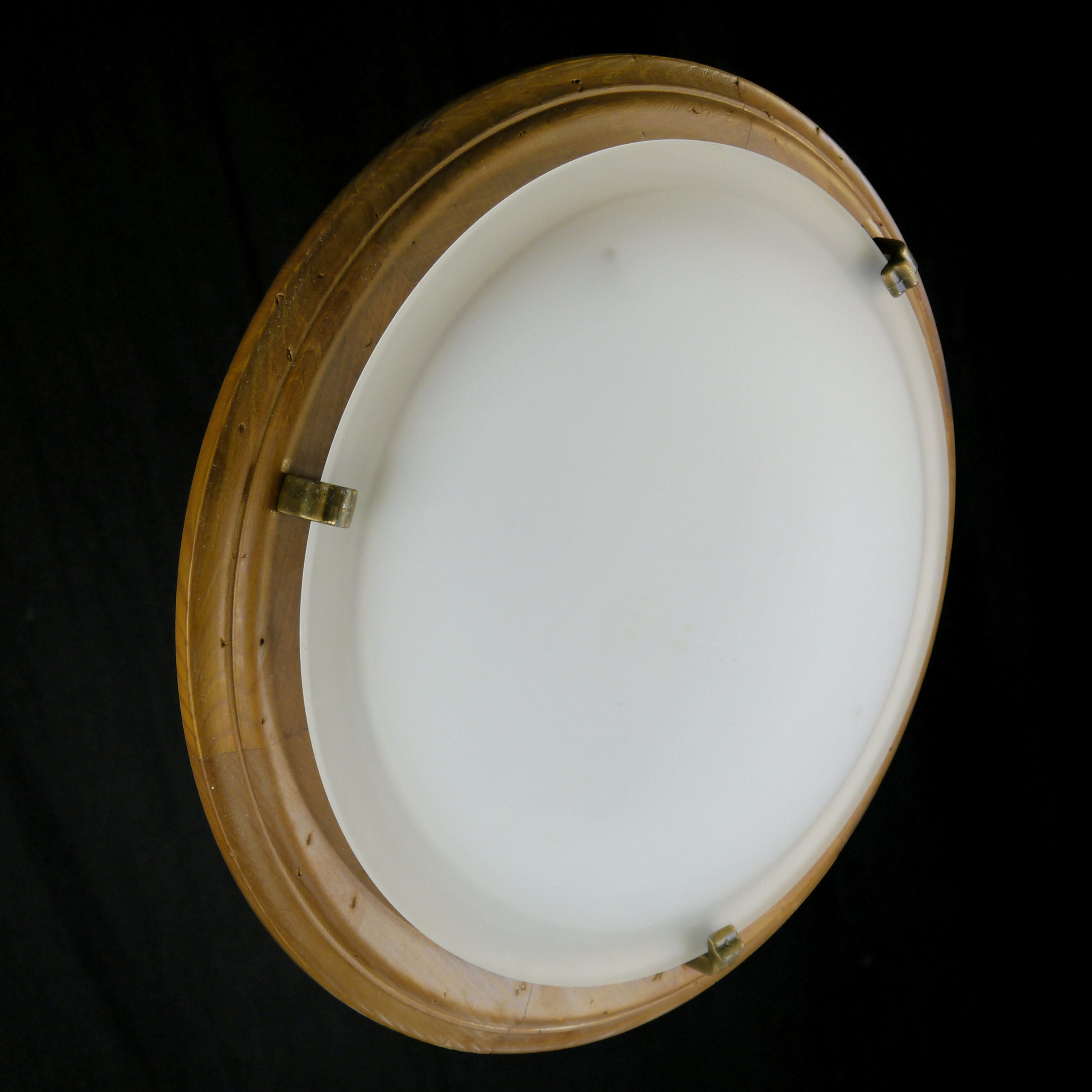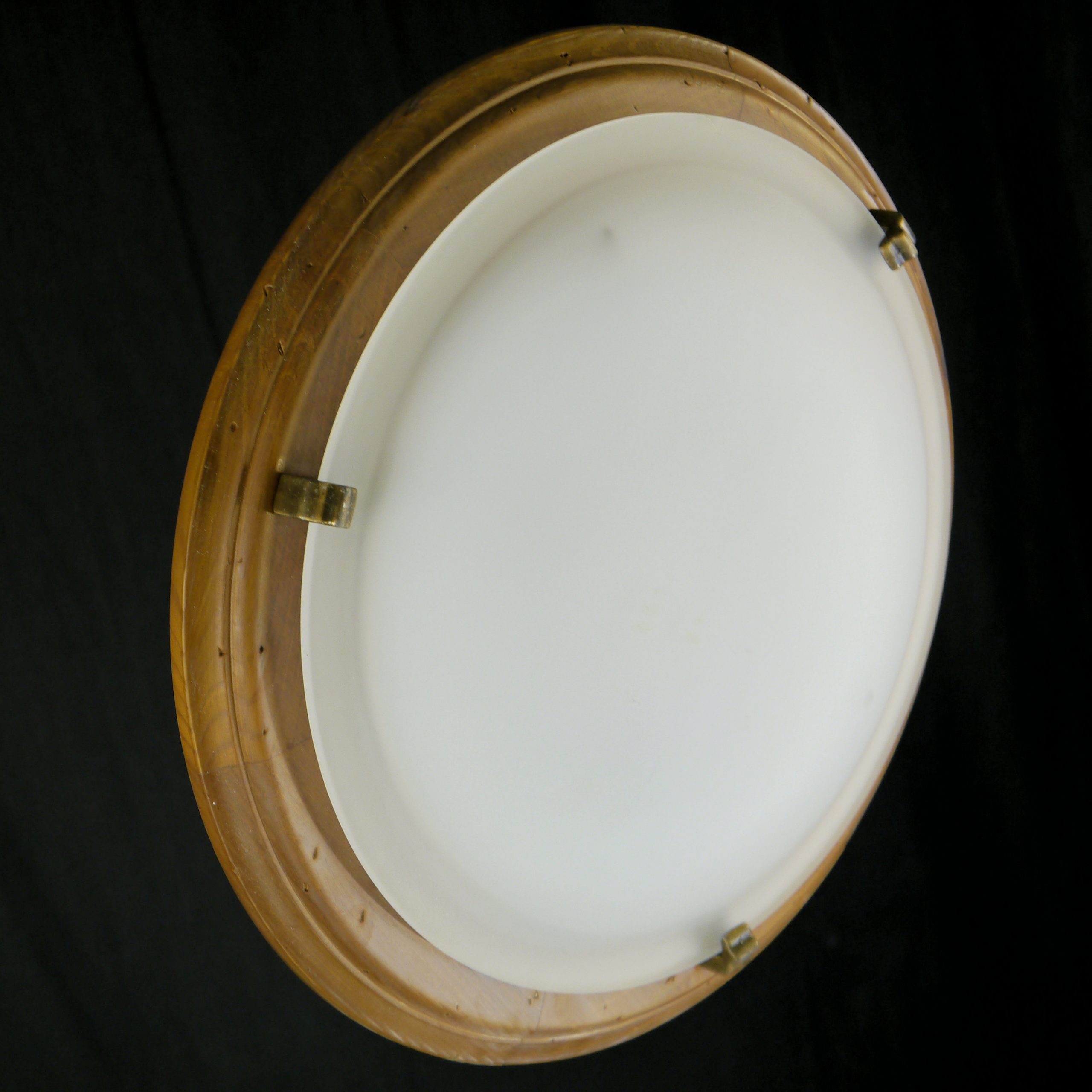 Plafoniera con diffusore di vetro satinato e cornice di legno color noce antichizzato